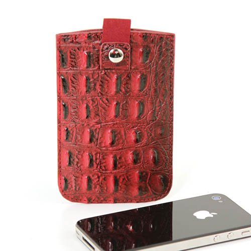 With a faux croc embossed sleeve, this iPhone sleeve does what it was made to do - Protect your iPhone with style! Slide it in, and with tug at the slip, out slides our iPhone. The dimensions are 5" X 3". Made in China.