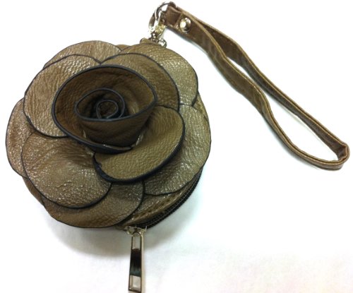 Designer Raised Flower Coin Purse Round shaped Pouch Bag Wristlet Rose Wallet Handbag Clutch Faux Leather Tote Chic 3D Flower Reviews