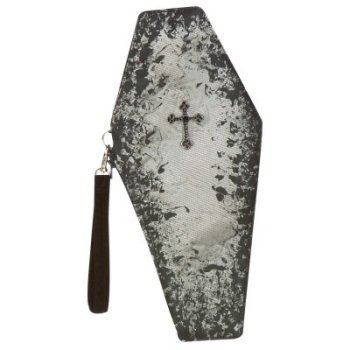 Getting done up as some creature of dead, living dead, undead, or just plain Gothic and dark? Then this is a must have accessory for that finishing touch. This little hand bag is shaped like a weathered coffin with a cross detail on front. A great Halloween costume!